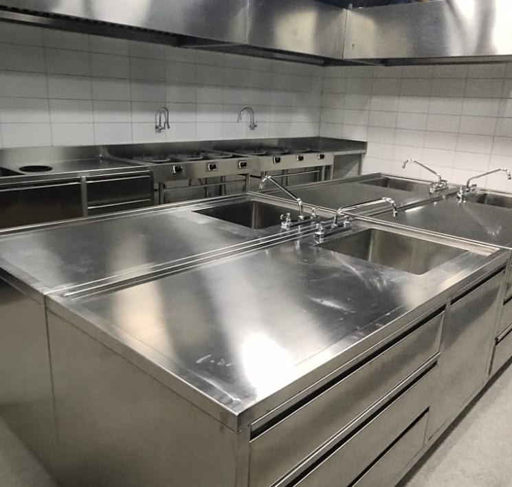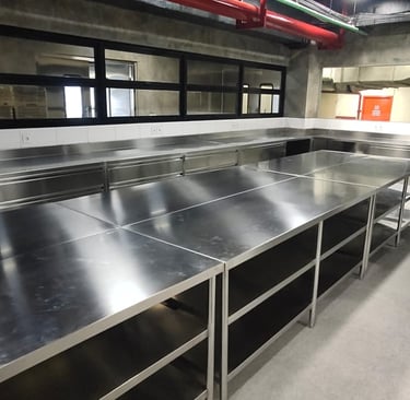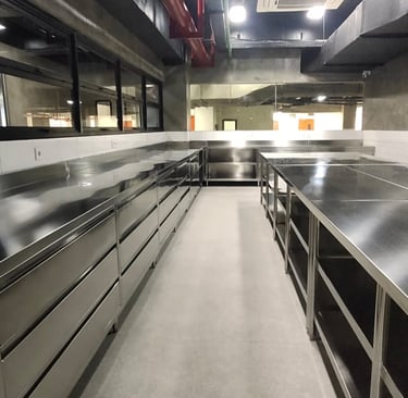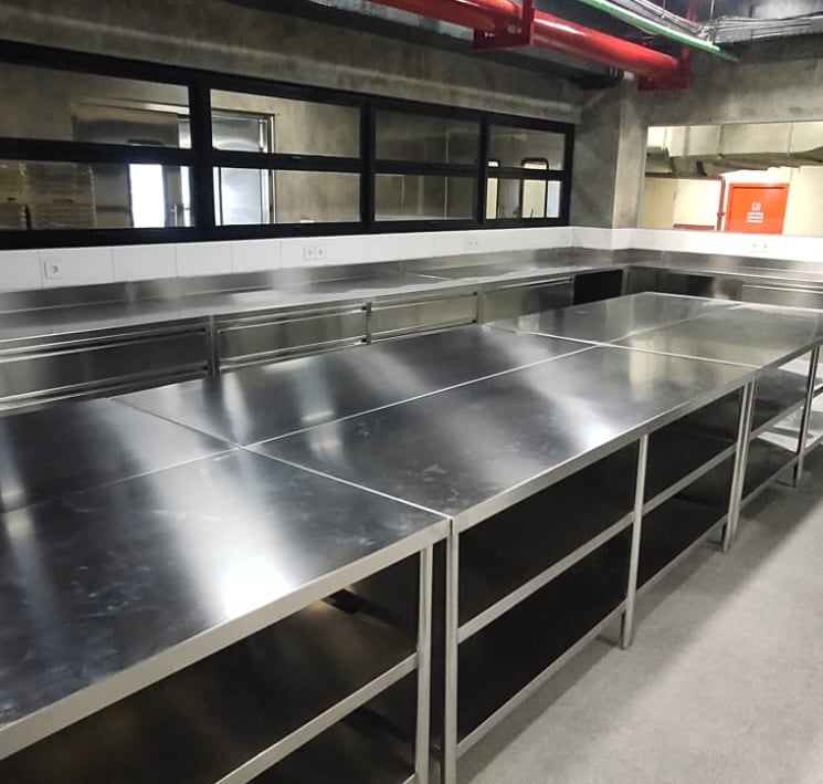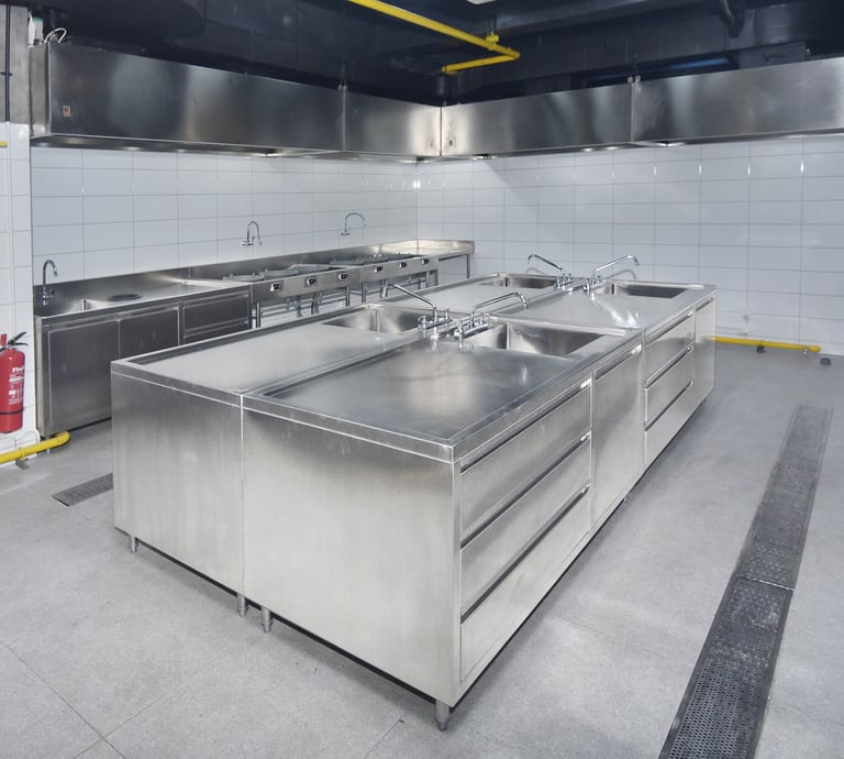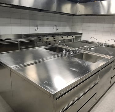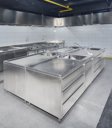 At Almaco, we design custom kitchen sets tailored for restaurants and hotels, ensuring durability and functionality with over 20 years of expertise in stainless steel craftsmanship.